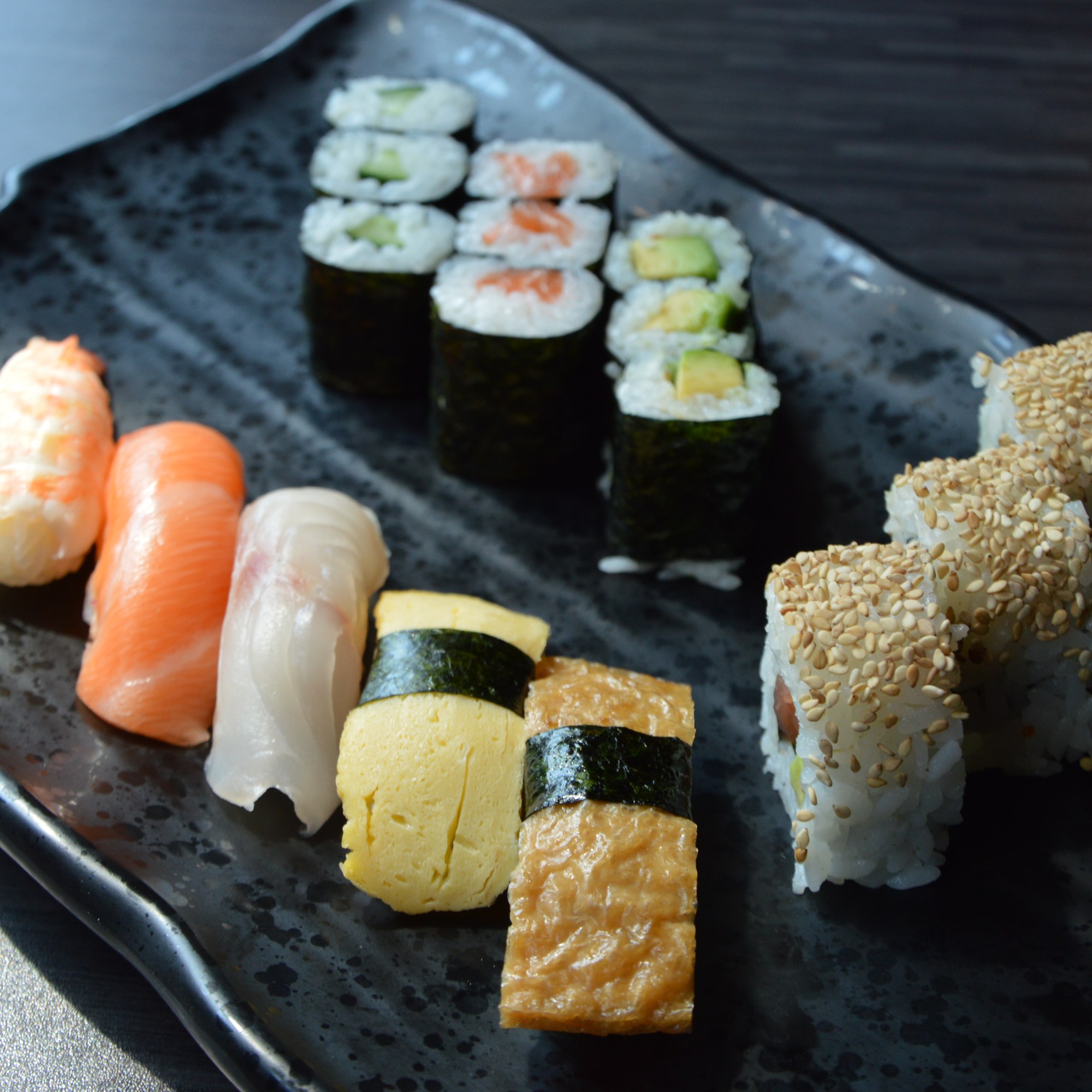 Hier kann richtig geschlemmert werden! Von Frühlingsrolle, über superleckere Hähnchenspieße, bishin zu den Jacobsmuscheln ist Alles dabei, was das Herz begehrt. Eignet sich auch ideal für die Nicht-Sushi-Esser! Lasst es euch bei uns schmecken!